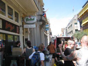 Traffic was horrible and again it took too long to pack the van and we ended up arrive around 18. We were late again, arriving about 18:15. Supposed to be there at 18 at the latest. It did not really matter at all though as the sound guy did not come until nearly 1930 and we were all set up and ready to soundcheck but he had to mic things and setup monitors, etc. Nice small club but very very hot. IT was 28C outside and there is no ventilation in this club, which has a legal capacity of 49. There were about 100 people if you include all out on the street. Everything was a bit chaotic, not sure about food, where we sleep, etc. and the people at the club just referred to someone else all the time, talk to this person.