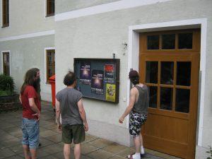 A very nice place and Hallein (hall-line) is a very beautiful small town. Wow. There was a nice stage and great upstairs backstage with beer, soda, water, pretzel snacks, and cookies, nice. It was very hot and they allow smoking inside which was not cool. The organizer and soundman, Christopher was very cool and treated us well. Soundcheck took forever and I had a major crisis and was very depressed as my modular synth had died and would not power up. We ended up taking it all apart and replacing the fuse. We were so lucky that the sound guy actual had the one I needed. It is not exactly the same, 400mA but a bit stronger but it worked. If it was truly dead, I would have probably just sat on the stage very depressed. I lost the cable for the kaossolator pad in Nurnberg so I would only have the monotron to play. Christopher saved the day again and had the cable I could borrow. Cool. Anyway, they did not have food ready until nearly 20:30 and it was just spaghetti with some cans of tomato sauce. Pretty terrible. The worst food of the tour. People were really let down. There was no cheese or bread. Just pasta and tasteless canned tomatoes. This is really not good enough. We will have to change the rider to make sure this does not happen. The band was tired and hungry and you get crap food. Not good and it effects your mood and everything. BMC hit the stage at 21:30 and played a short 45mins set but excellent and very focused. Jack’s Cold Sweat (which is the soundcheck song every night), Andromeda and Barnard’s Loop. I thought I played well and the whole band sounded great. Øyvin’s vocal was not that good though. I forgot to plug in the external mic so the BMC recording is not that good. I think Sabine filmed it.